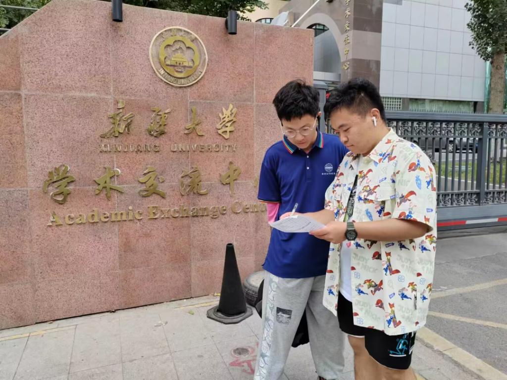 团队成员在新疆大学发放调查问卷