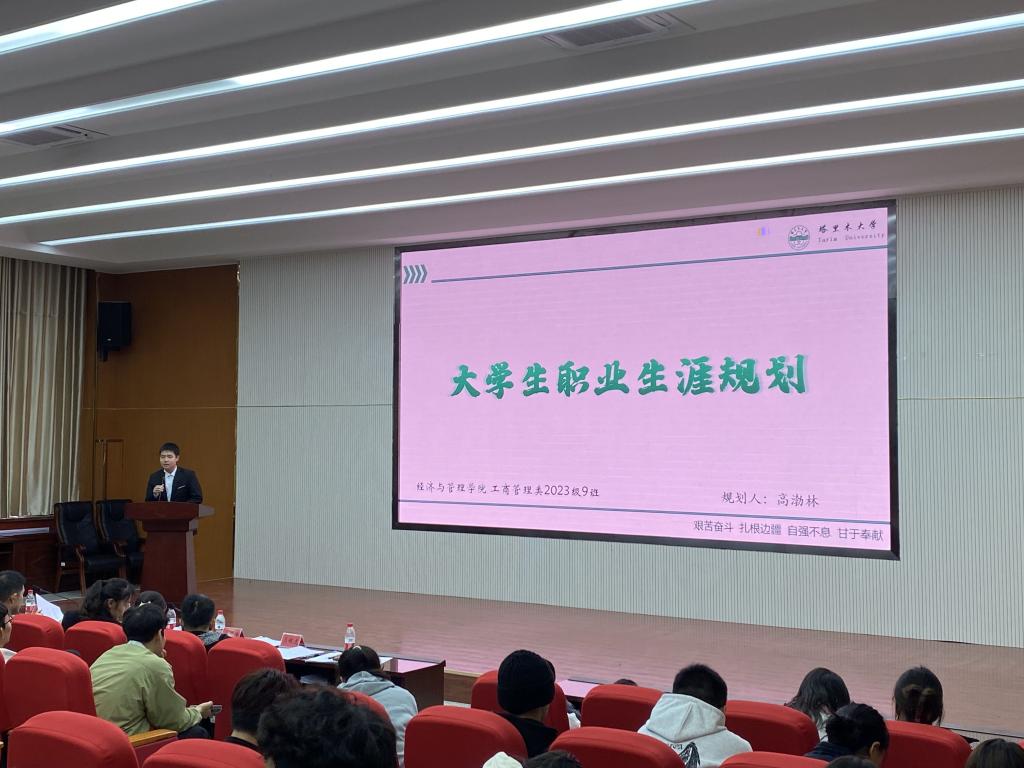 为强化我院大学生职业生涯规划意识,帮助大学生找准自身发展就业方向,提高大学生的规划意识、目标意识、就业意识。11月5日下午由经济与管理学院和胡杨导航辅导员工作室共同举办的“筑梦青春志在四方,规划启航职引未来”主题大学生职业生涯规划大赛在文科实验楼504举办。学院学办主任、胡杨导航辅导员工作室负责人王小云,党委学工部宿舍管理科科长李新龙,招生就业处招生科副科长王曼琳,信息工程学院学办主任潘洋洋,发展规划处老师马银虎担任评委嘉宾,22个参赛个人及学院100多名学生参与比赛。