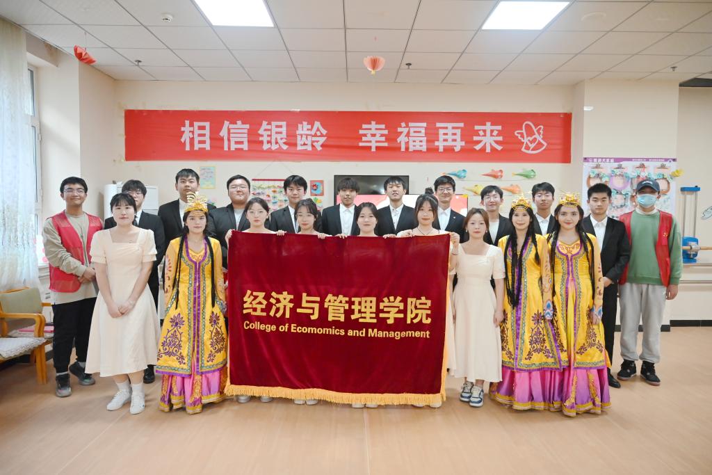 在元旦佳节到来之际,为了给养老院的老人送去温暖和关爱,弘扬尊老敬老的传统美德。12月30日经济与管理学院团委志愿服务部前往阿拉尔市银铃养老院开展了“福暖四季,顺遂安康”主题文艺表演。40多名志愿者,70多名养老院工作人员和爷爷奶奶们参与本次活动。