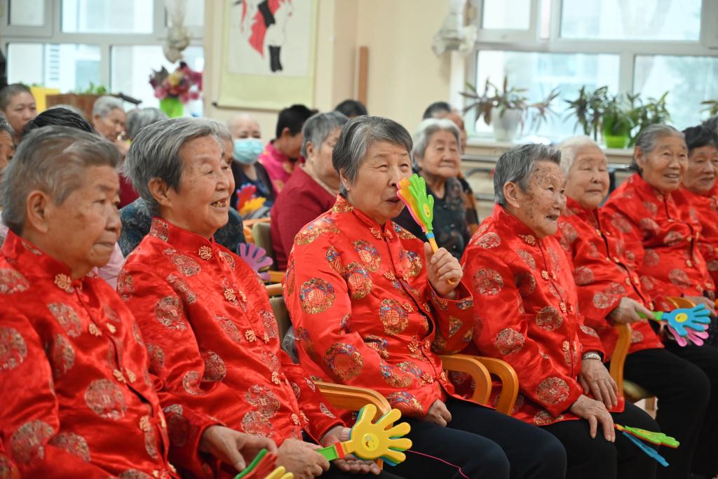 现场气氛温馨而热烈,爷爷奶奶们的脸上洋溢着幸福的笑容。