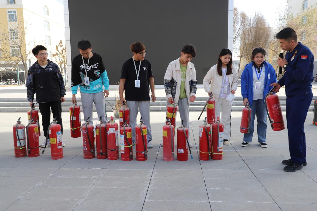 随后,消防人员现场指导学生们如何使用灭火器进行灭火,学生们亲身体验,熟练掌握了灭火器的使用方法。