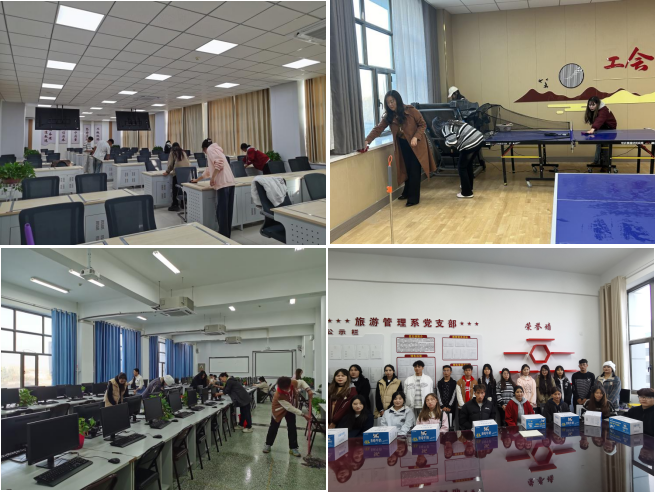 劳动铸就梦想,奋斗书写青春。10月25日下午,旅游管理系全体教师和结亲同学在文科实验楼209、401、402和502等教室、活动室,开展了打扫卫生活动。