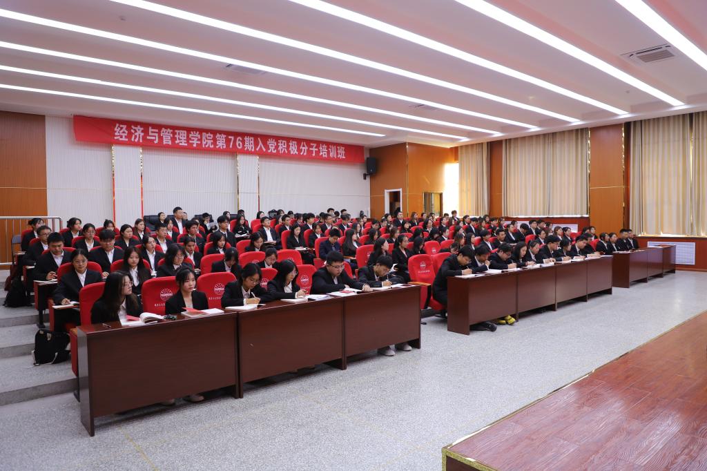 为深入学习贯彻落实党的二十届三中全会精神,切实提高入党积极分子的理论水平和政治素养,10月9日-15日,经济与管理学院于文科实验楼504报告厅开展了第76期入党积极分子党课培训。