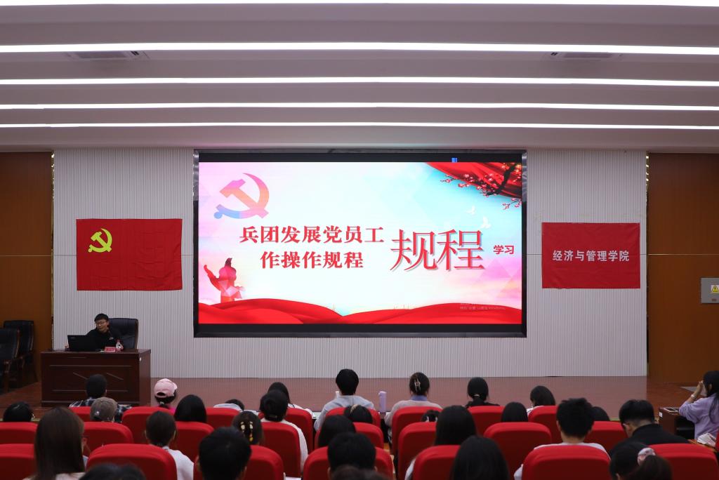 经贸系学生党支部书记王宏图老师在《兵团发展党员工作操作规程》课程中,深入细致地为学员们讲解了发展党员的总体要求与原则、发展党员的具体流程、发展对象的确定和考察、预备党员的接收、预备党员的教育、考察和转正,老师将党的理论、政策与实际紧密结合,让学员们在掌握《兵团发展党员工作操作规程》的同时,更加深刻地理解了党的宗旨和使命,汲取党的智慧与力量,不断锤炼自己的政治修养。