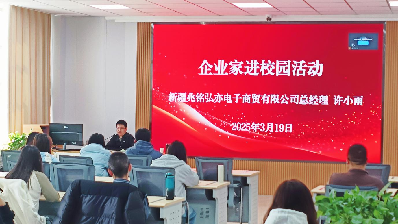 3月19日,农林经济管理专业2019届毕业生许小雨面向经贸系学生,开展了一场别开生面的招聘交流活动。许小雨在毕业以后扎根新疆、留在南疆,深耕和田地区农产品市场,现任新疆兆铭弘亦电子商务有限公司公司总经理。