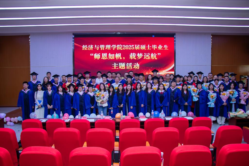 活动在全体硕士毕业生的合影中圆满结束。今日的告别不是终点,而是扬帆的起点。2025届经管学子将以师恩为帆,载梦远航,在服务国家战略与时代使命中书写属于他们的华章。