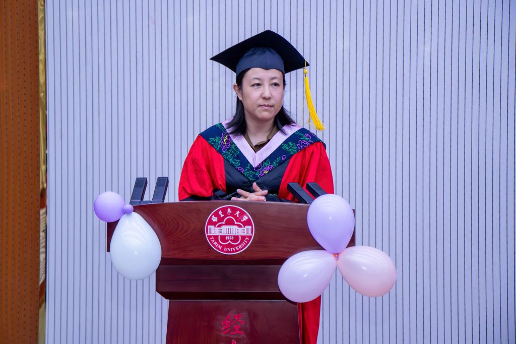 蒋志辉书记致辞:“在求学期间,你们在课堂上深耕专业,在实验室里探索前沿,在乡村振兴调研中躬身实践,更是在数字化浪潮中展现经管智慧。这些成就,是你们与导师并肩奋斗的见证,也是塔大“胡杨精神”的生动诠释”。