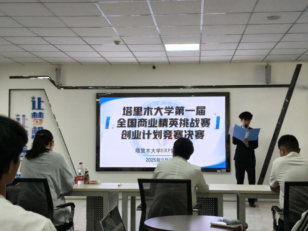 2025年9月27日,塔里木大学第一届全国商业精英挑战赛“创业计划”竞赛校赛决赛在老图书馆三楼创客中心成功举办,本次大赛由塔里木大学教务处主办、经济与管理学院主办,ERP青创学会承办。经过激烈的角逐,2支团队获一等奖、4支团队获二等奖、7支团队获三等奖。活动中,评委老师、参赛团队纷纷亮相,不仅明确了竞赛“以赛促创、以创赋能”的核心目标,更为选手们送上了诚挚的肯定与殷切鼓励。