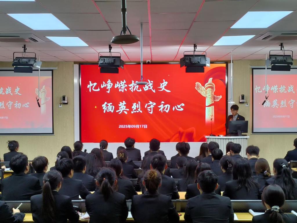 2025年09月17日15:00,经济与管理学院学生党支部于逸夫教学楼阶梯教室十二开展“忆峥嵘抗战史,缅英烈守初心”主题党日活动,经济与管理学院学生党支部全体党员及部分入党积极分子参与,活动由经贸系学生党支部卢中阳同志主持。