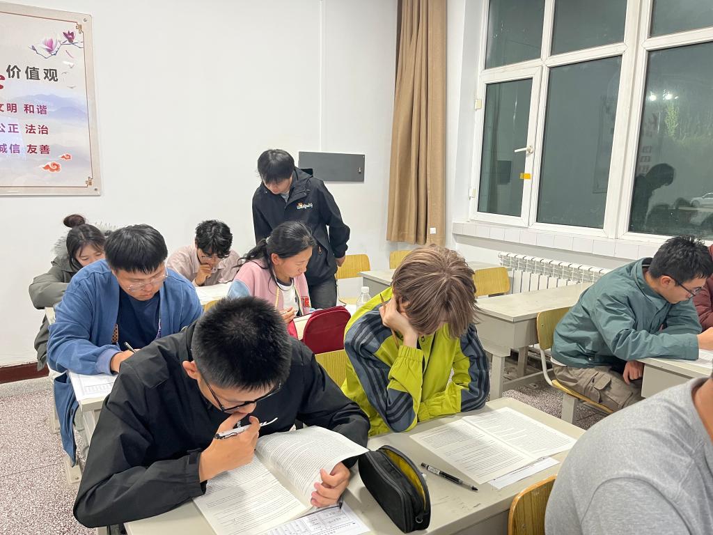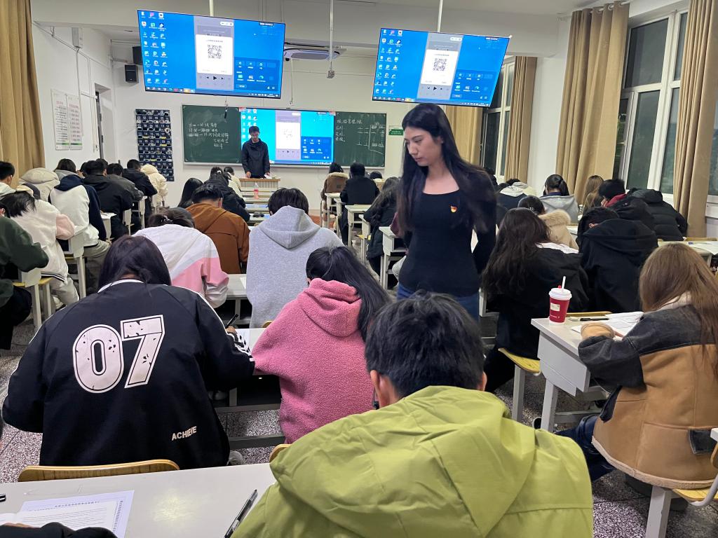 考试过程中,支部党员与协会干事协同完成考场布置、监考与巡考工作,严格遵循真实考试流程,在听力播放、答题卡填涂等关键节点进行提示与说明。现场考风严谨、秩序良好,参考新生沉着应答,展现出积极的备考状态。党员与协会成员在考务间隙及时为新生答疑,帮助大家提前适应考试节奏与环境,有效缓解备考焦虑。