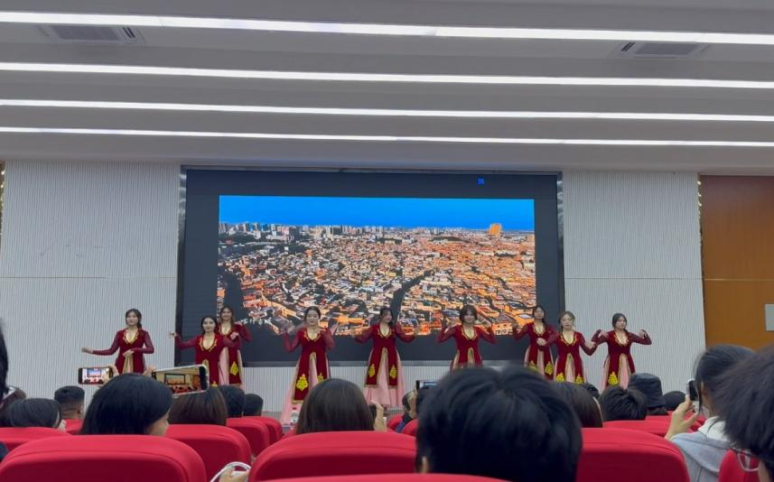 除此之外,高年级同学携新生准备了精彩的节目,让新生感受到大学生活的美好。杨洁明老师献唱《苹果香》,为新生展现了新疆风情特色。
