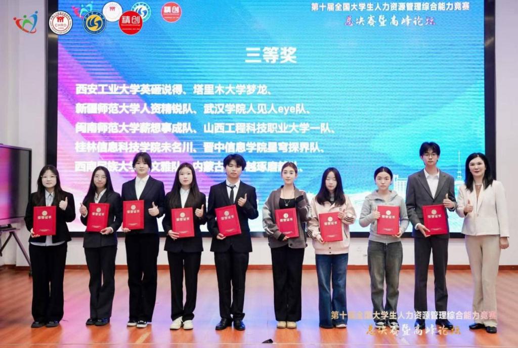 2025年11月8日—9日,第十届全国大学生人力资源管理综合能力竞赛决赛在武汉理工大学举行。最终,我校参赛队伍获得全国三等奖。