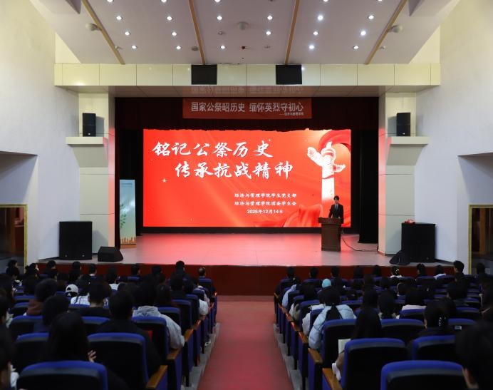 为缅怀南京大屠杀遇难同胞,致敬为国家和民族牺牲的英烈,凝聚守护和平、砥砺前行的力量,经济与管理学院学生党支部联合团委学生会于12月14日在大学生活动中心报告厅举办了“铭记公祭历史 传承抗战精神”主题宣讲活动。